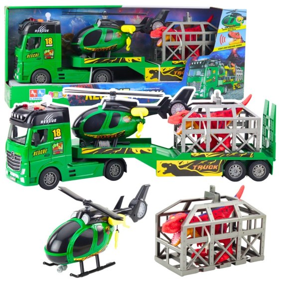 Zestaw Ratowniczy Ciężarówka Helikopter Samochód Dinozaur Światła Dźwięki